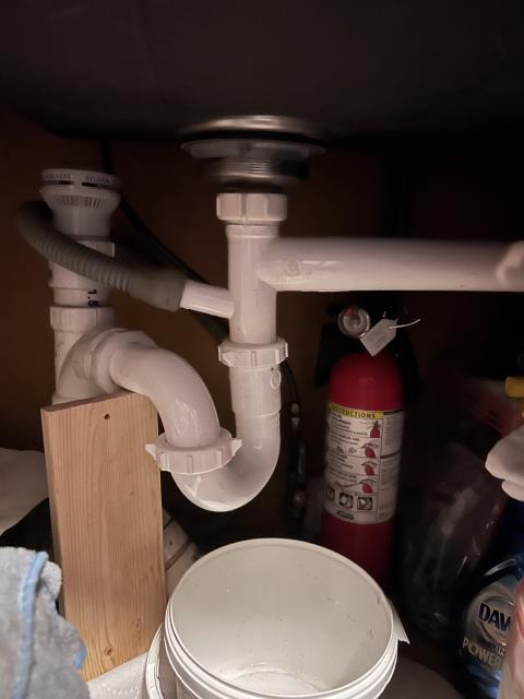 Installed a new double bowl sink trap and strainer to fix the leak.